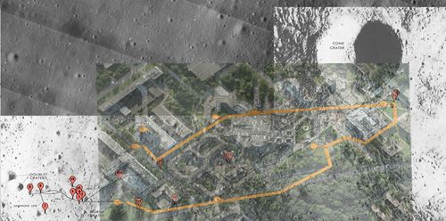 As with previous moongolf missions, the aim was to walk and play along a prescribed route, conversing and medialogging as we go, with the result that we map out a complete golf hole – a golf hole that becomes part of the course I am designing for the moon.