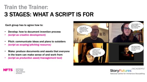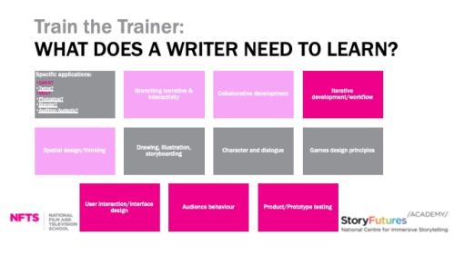 My last piece of formal work for NFTS has been developing a series of interactive & immersive screenwriting workshops as part of the ‘Train the Trainer’ scheme funded by StoryFutures Academy.